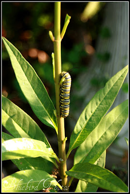 I try to keep a lot of plants in the garden for the caterpillars to munc on.  This little guy will become a gorgeous Florida Swallowtail Butterfly with a radiant blue coloring.  Here he is munching on some butterfly weed which has a pretty orange flower...see tomorrows post.